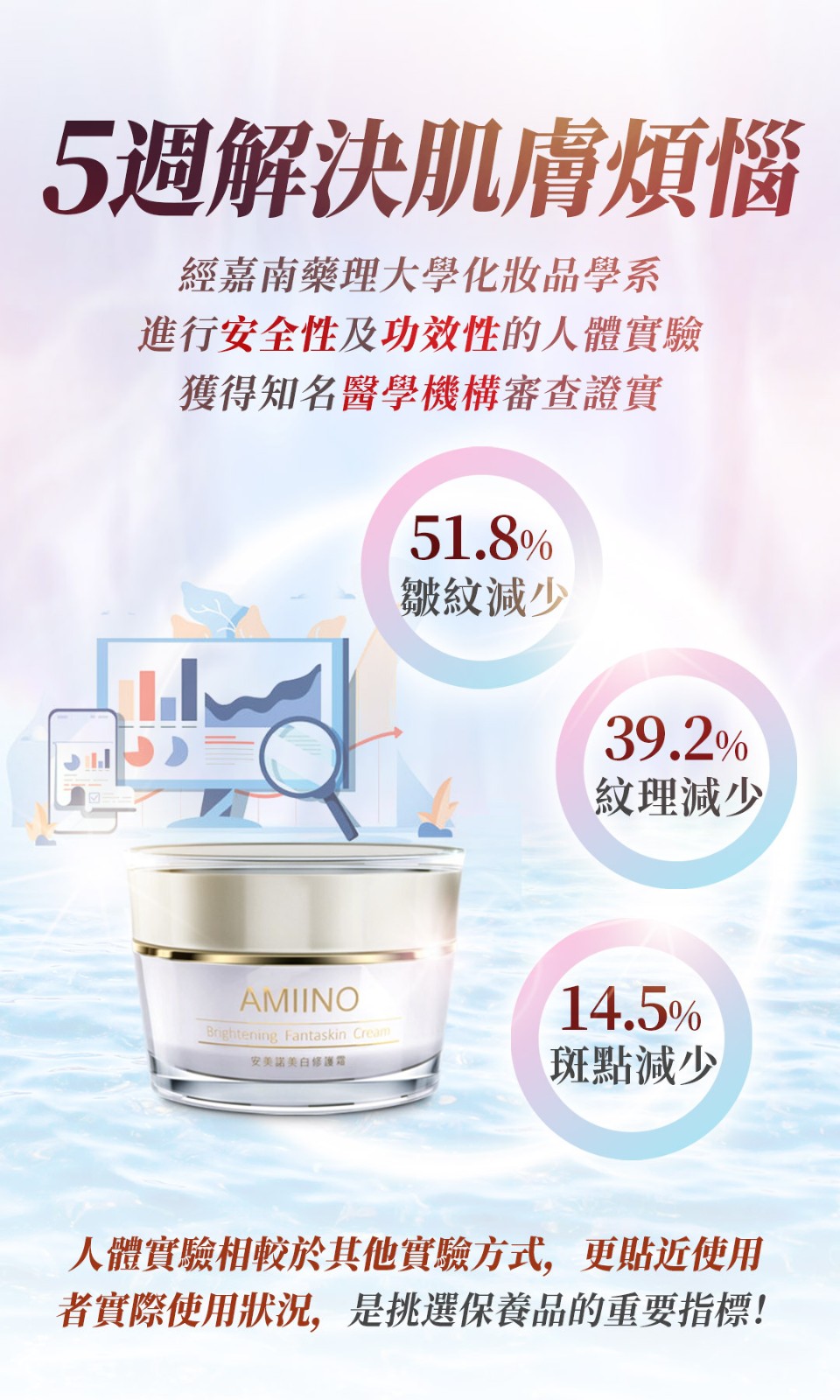 5分鐘前【安美諾 美白修護霜】 一瓶多效 美白淡斑修護保濕緊緻毛孔延緩肌膚老化 經過人體實驗,醫學機構證實,5週有感! - 美白修護霜1入 送珍珠潤澤面膜 1片