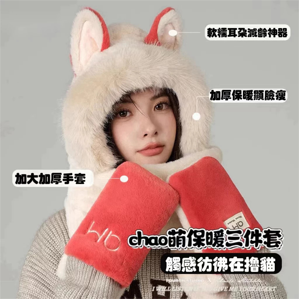 12分鐘前冬季爆款#火狐狸圍巾 帽子一體 保暖 圍脖 日韓 可愛 女生 百搭 情人節 春節 禮物 生日禮物 交換禮物 - 【狂殺特賣】團購三入組$1399