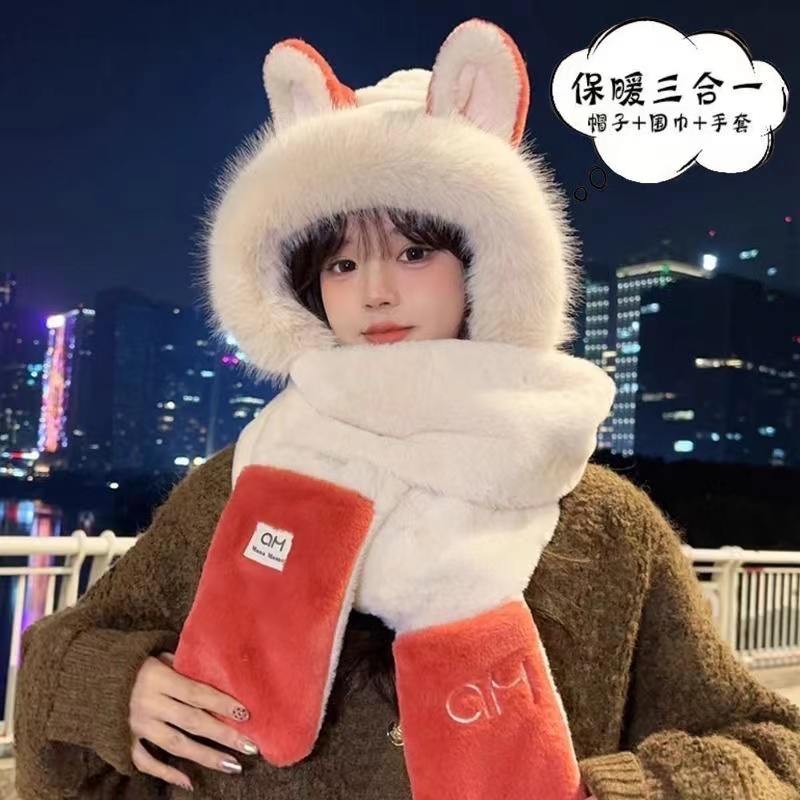 15分鐘前冬季爆款#火狐狸圍巾 帽子一體 保暖 圍脖 日韓 可愛 女生 百搭 情人節 春節 禮物 生日禮物 交換禮物 - 【狂殺特賣】團購三入組$1399