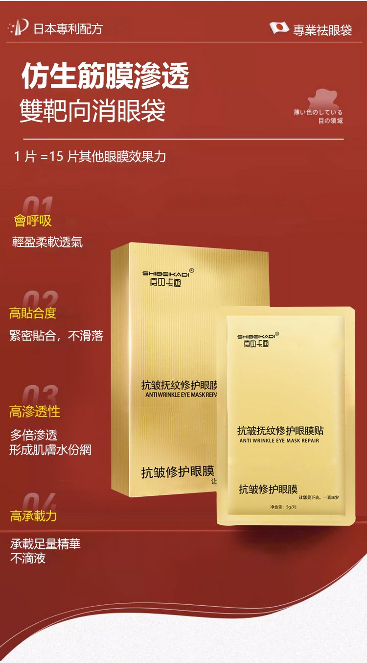 15分鐘前每晚貼一貼,輕鬆淡化眼紋、眼袋,多買多送,僅限今天!免費包郵,不滿意直接退!快下單試試吧,用了你不會後悔! - 【官網限定】1入組NT$990(8對16貼體驗裝)
