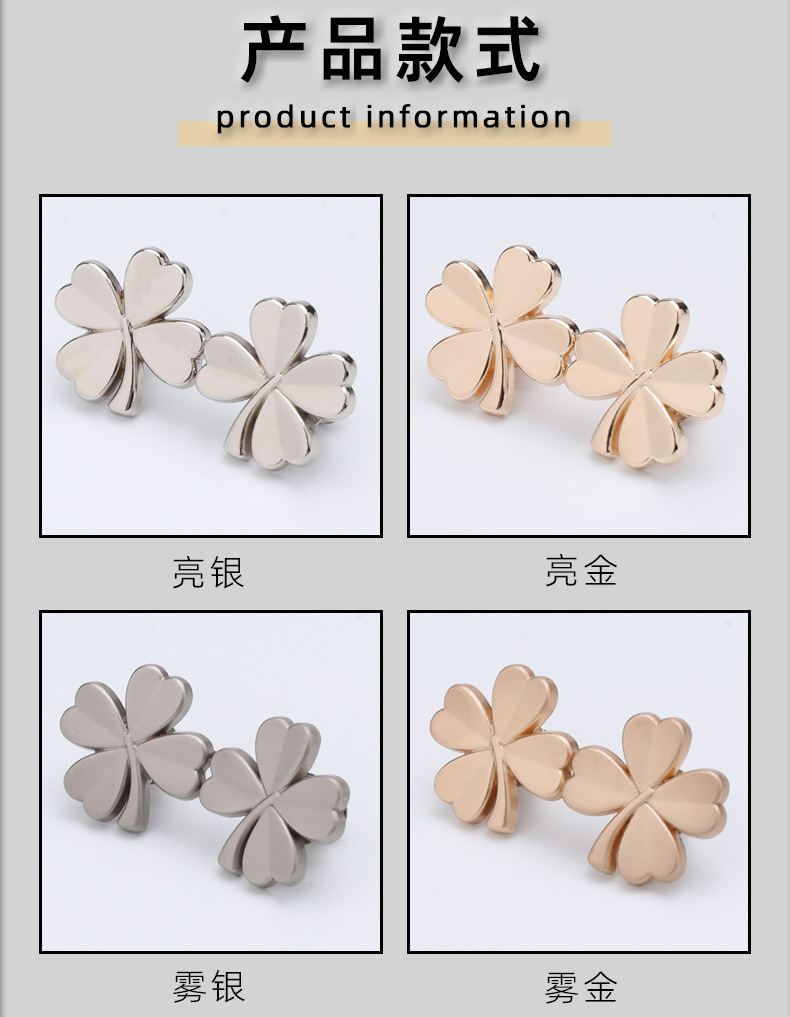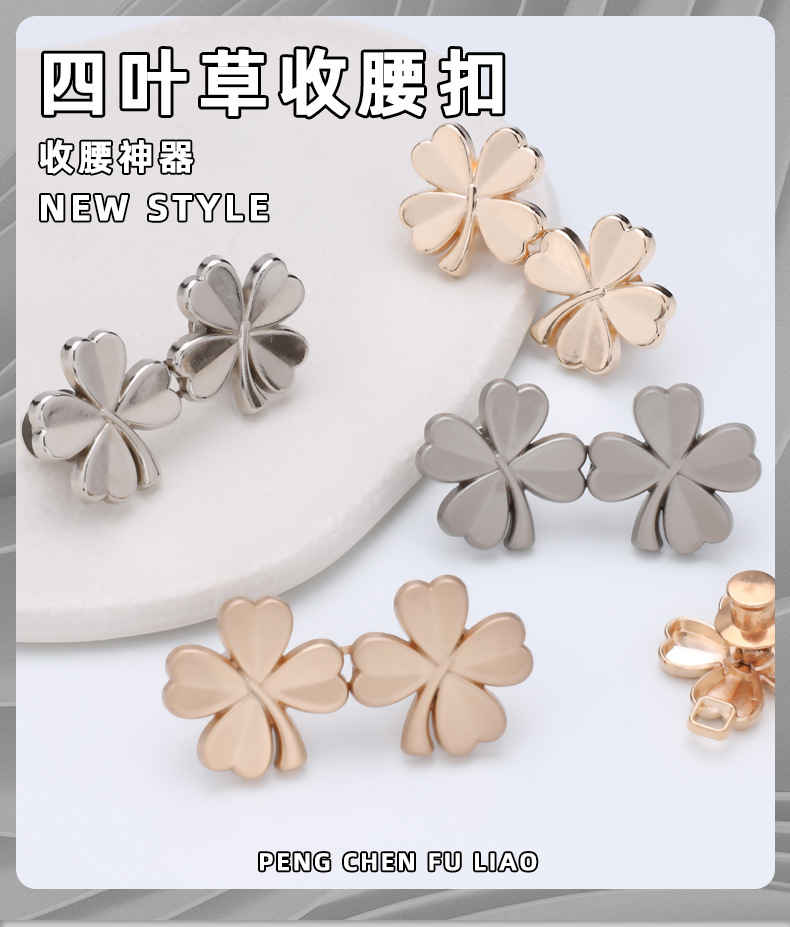 4分鐘前四叶草金属收腰扣 可拆卸免缝免钉收腰鈕扣 小對扣 牛仔裤收腰扣腰的神器 腰圍調節扣 固定扣 - 團購價10入組1199