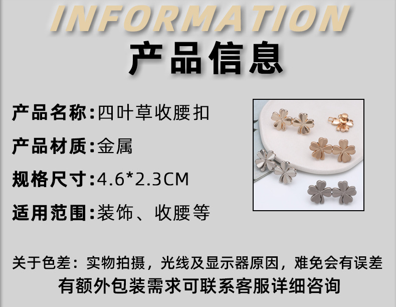 半小時前四叶草金属收腰扣 可拆卸免缝免钉收腰鈕扣 小對扣 牛仔裤收腰扣腰的神器 腰圍調節扣 固定扣 - 折扣價6入組999