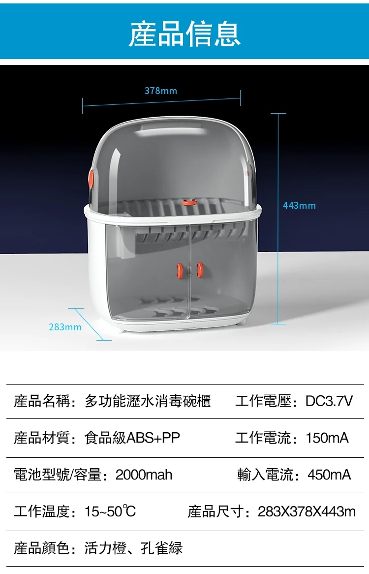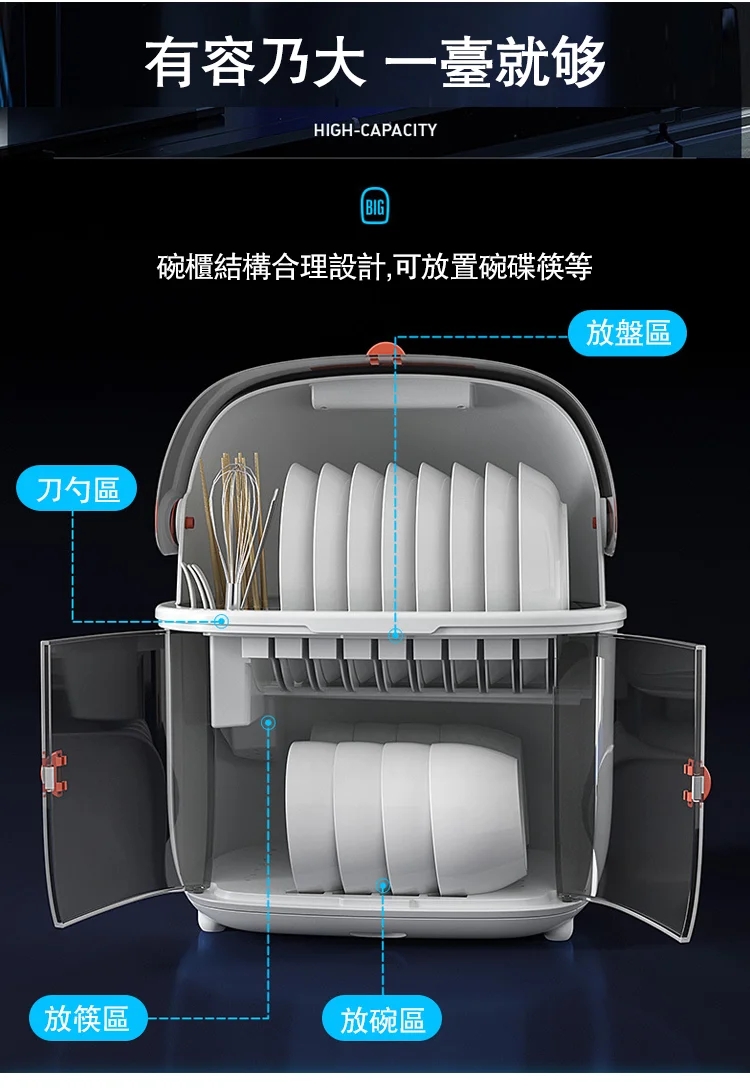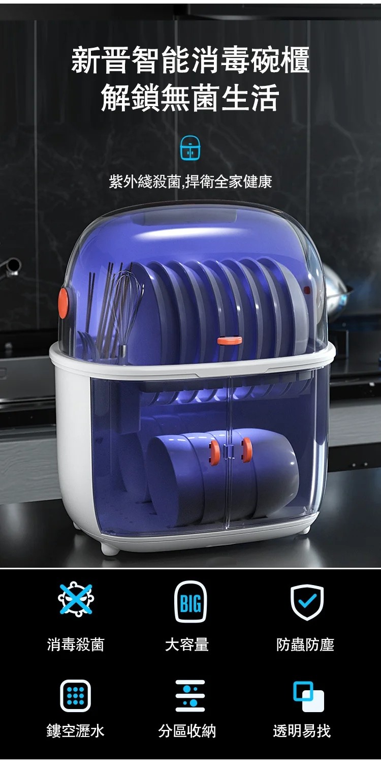 半小時前智能家用碗碟收納瀝水紫外線消毒密封雙層碗櫃 - 一入組NT$1398 NT$ 1398