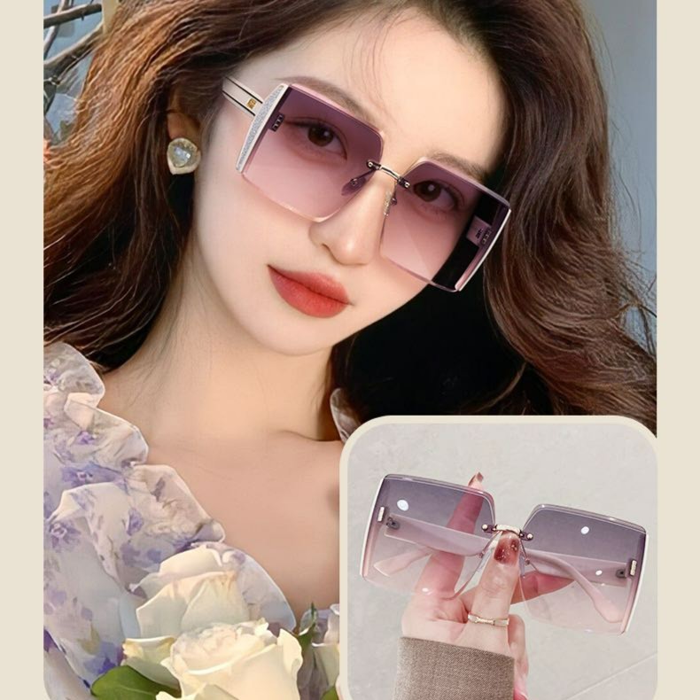 2分鐘前2023新款方形無框切邊太陽眼鏡網紅個性閃粉大框時尚大臉顯瘦墨鏡 - 【新品嘗鮮】一入組 僅售 NT$ 999