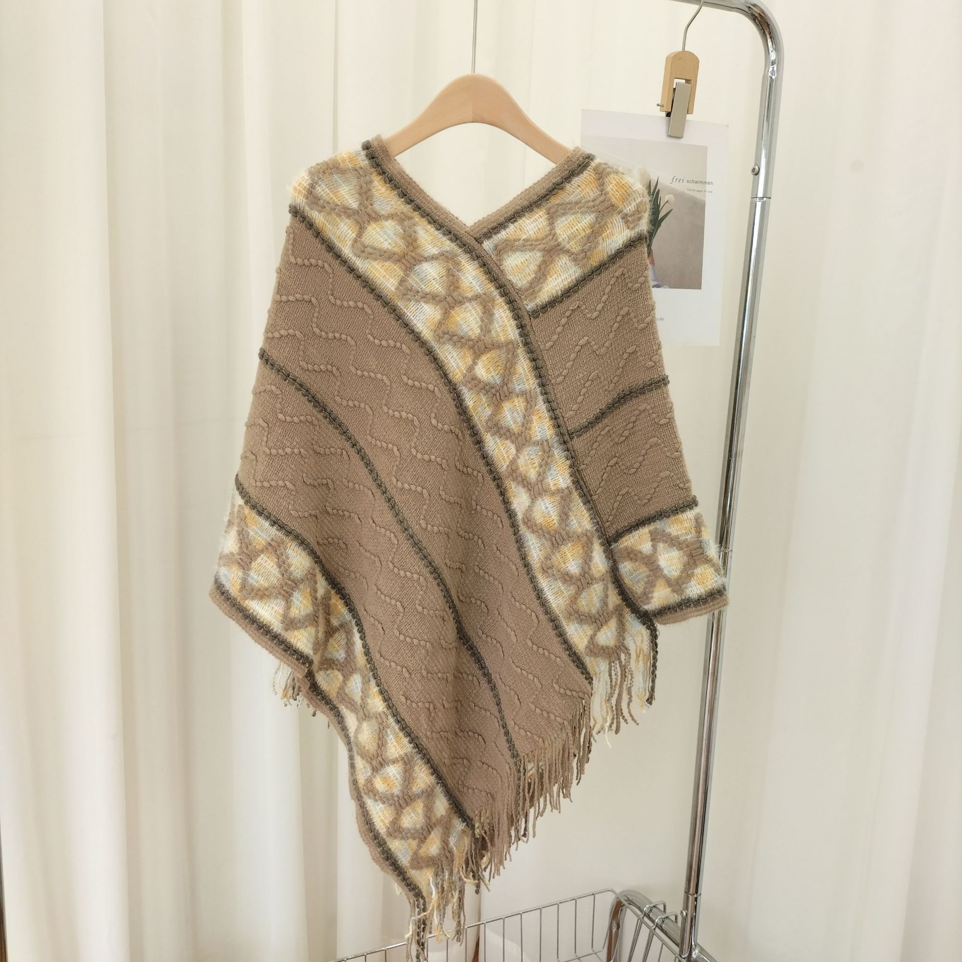 5分鐘前流蘇套頭針織披肩,民族風披肩波浪彩色百搭款 - 95%顧客選擇【超夯活動】2入組-NT$1290