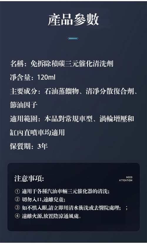 20分鐘前免拆除積碳 【黃金三元催化清洗劑】淨化尾氣、減故障燈、清除積碳、降低油耗、動力更加強勁,輕鬆通過年檢 - 五萬公裡內【節省油耗】三元催化清洗劑10瓶 NT$1198