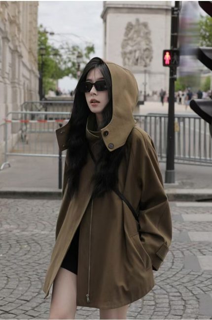 20分鐘前【現貨爆款】秋冬新款 斗篷風衣外套 美拉德英倫風 高品質連帽工裝 - 優惠價一入組NT$1398