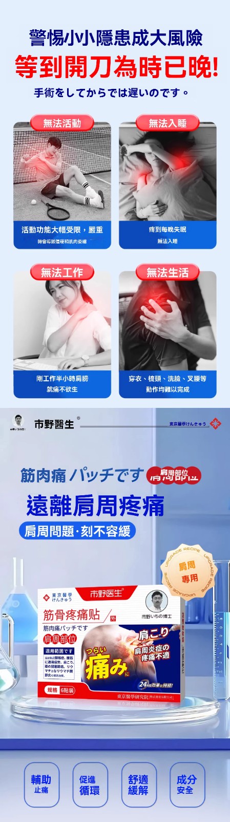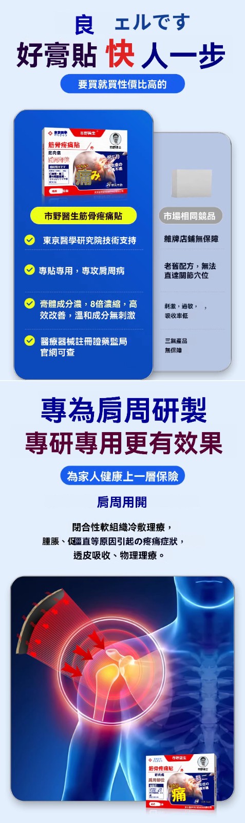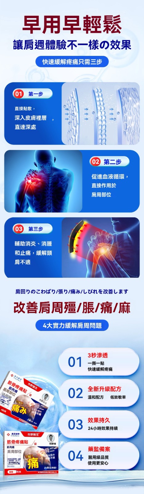 20分鐘前市野醫生緩解關節疼痛肩周貼,多種原材合理搭配製成,柔軟貼合,長時貼敷、深入肌膚呵護,早用早好。 - 【三療程 行走順暢不再疼痛】買三送四-NT$1400