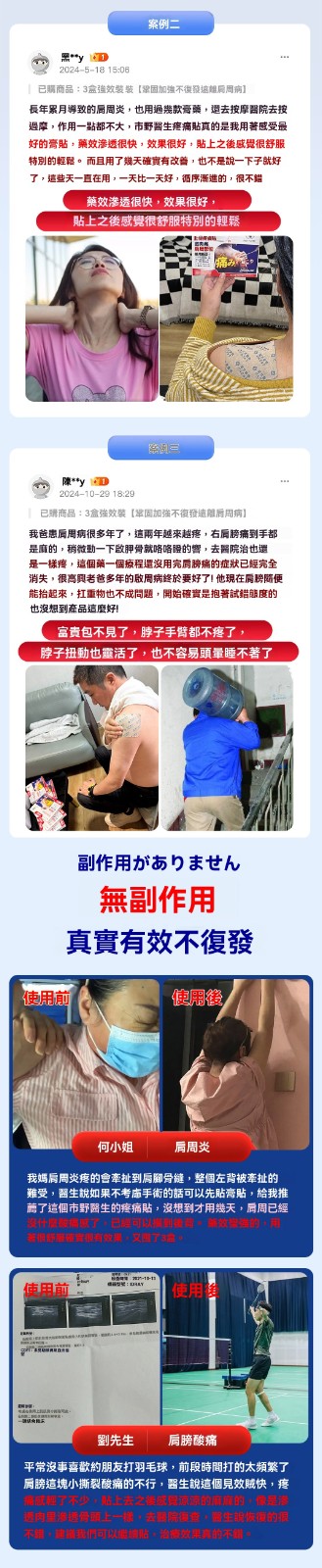 5分鐘前市野醫生緩解關節疼痛肩周貼,多種原材合理搭配製成,柔軟貼合,長時貼敷、深入肌膚呵護,早用早好。 - 【二療程 治療腿疼肩胛疼】買二送三-NT$1200