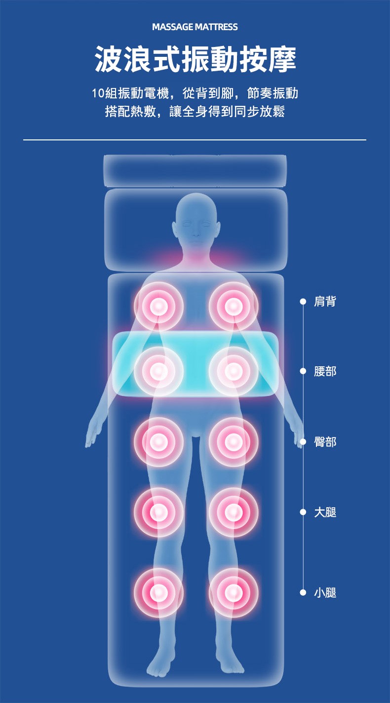 5分鐘前多功能全身按摩床墊 | 電動加熱頸椎、腰部、背部、腿部全方位按摩器,舒緩身心疲勞 - 6鍵旗艦款(6鍵揉捏+震動+氣囊+10電機+腰部熱敷)