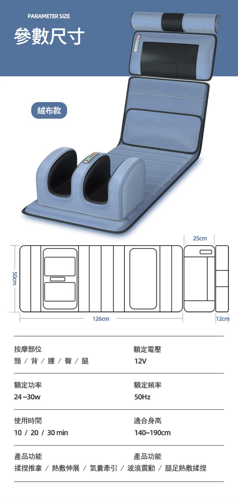 15分鐘前多功能全身按摩床墊 | 電動加熱頸椎、腰部、背部、腿部全方位按摩器,舒緩身心疲勞 - 豪華皮質款五合一可拆卸(藥枕+頸部滾輪+震動加熱+【腿部加熱揉捏】)