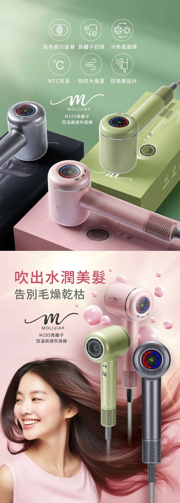 15分鐘前M195 負離子恆溫高速吹風機 乾髮護髮,一次搞定 - 優惠價一入組NT$1398