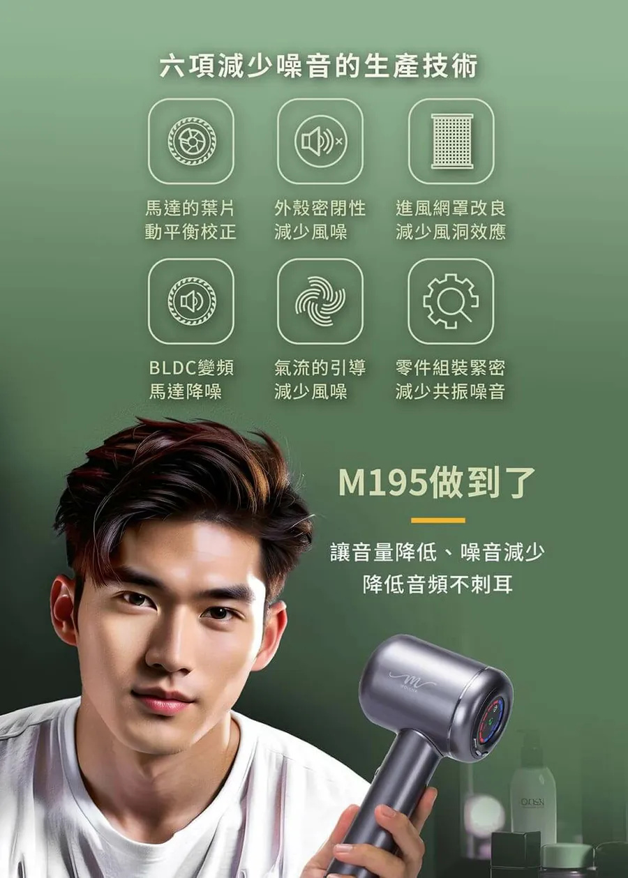 5分鐘前M195 負離子恆溫高速吹風機 乾髮護髮,一次搞定 - 優惠價一入組NT$1398