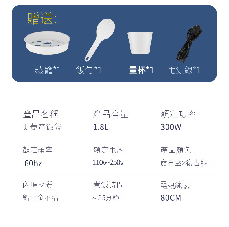 【限時特惠】美菱多功能迷你電飯煲,煮飯煲湯二合一,1-3人的量剛剛好,下單贈送蒸籠、米飯勺、量杯。