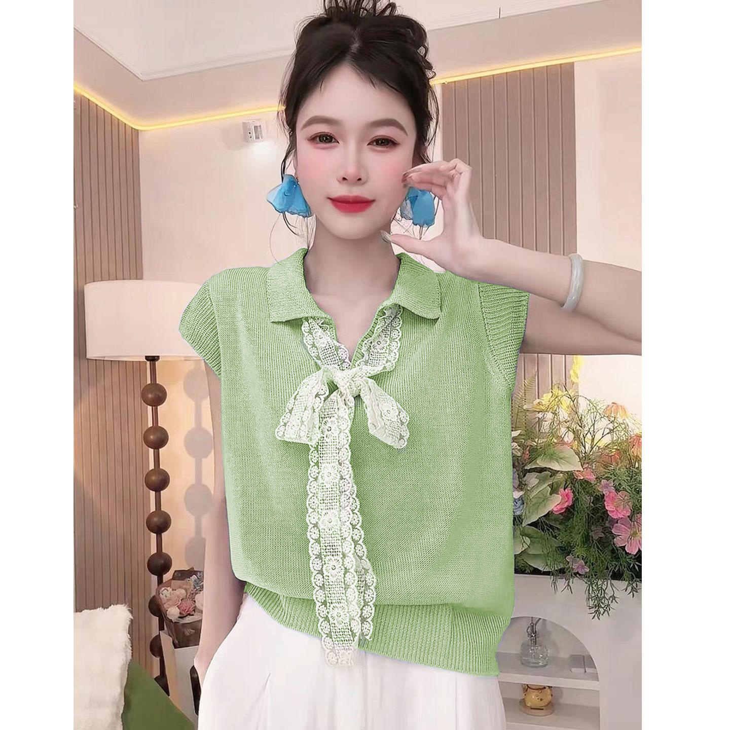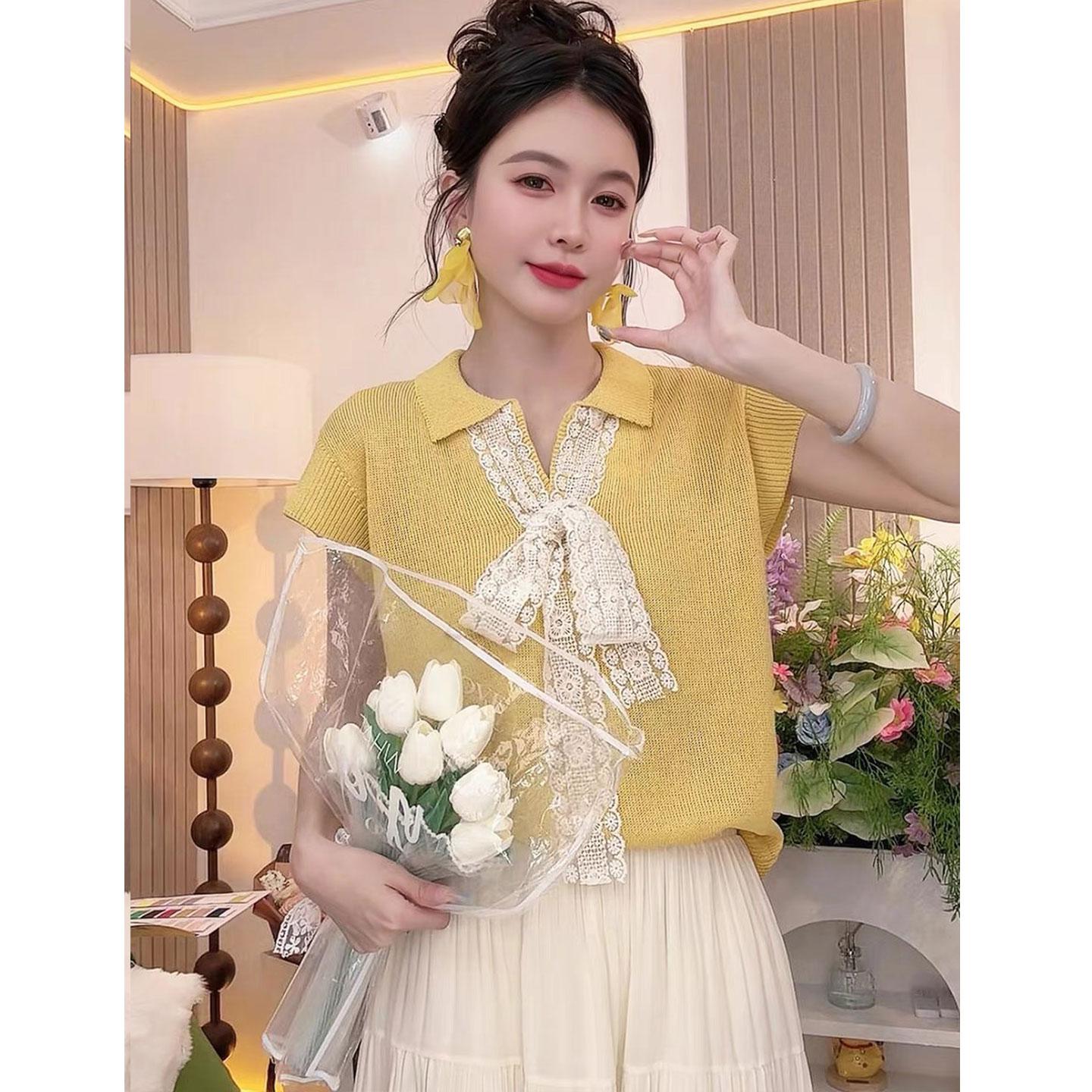 5分鐘前【台灣出貨】火爆折扣中!夏裝新款蕾絲拼接蝴蝶結冰絲針織衫 - 【四入組】任選4件 NT$ 1380
