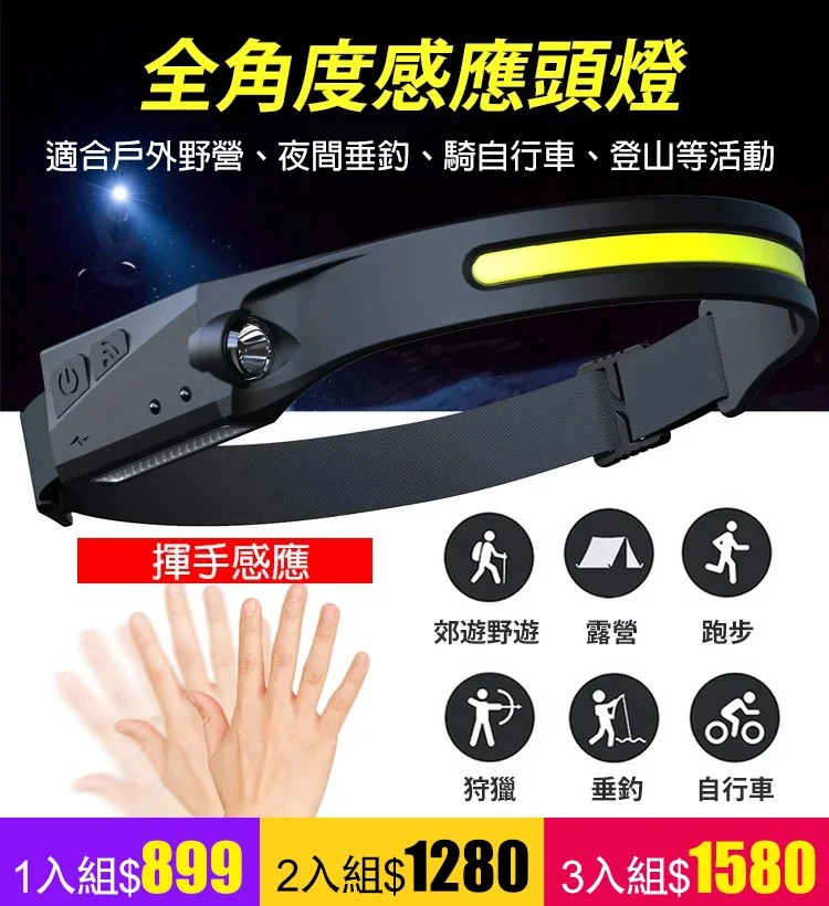 15分鐘前智慧感應式頭燈,3款照明方式!解放雙手照明好物! - 超夯活動:1入組 NT$799