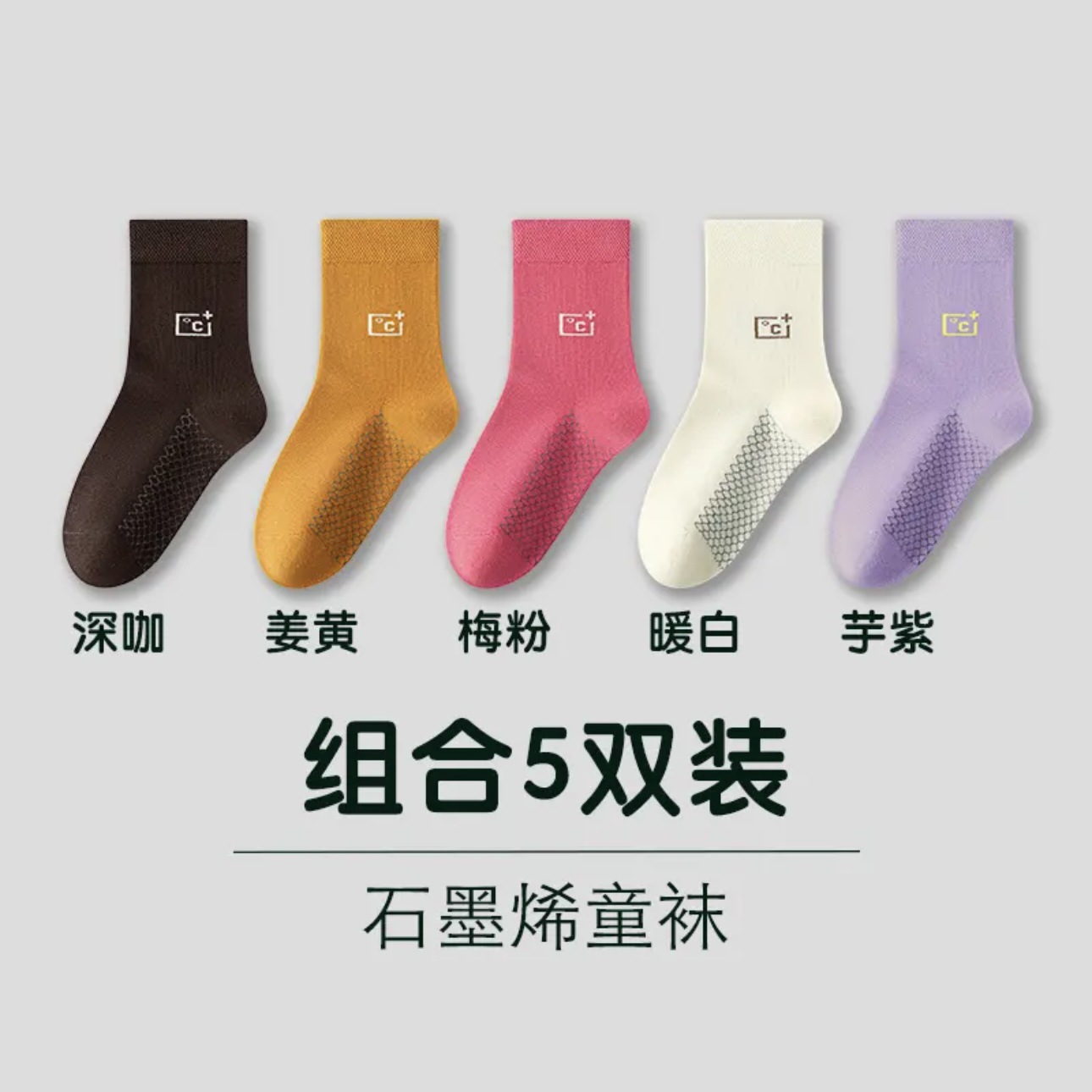 7分鐘前韓系純色字母長筒兒童石墨烯保暖防臭襪 - 【禮盒5雙裝 嘗鮮套餐】1入組-NT$880