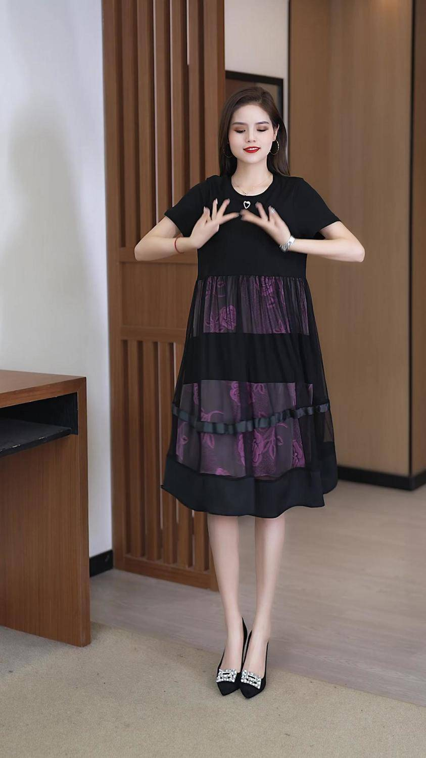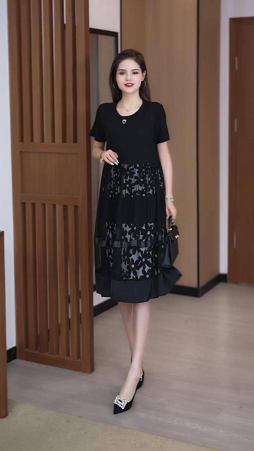 12分鐘前2025夏季新款時尚假兩件寬鬆遮肚網紗連衣裙 - 【尊享三入】僅需NT$1298(均價NT$432)