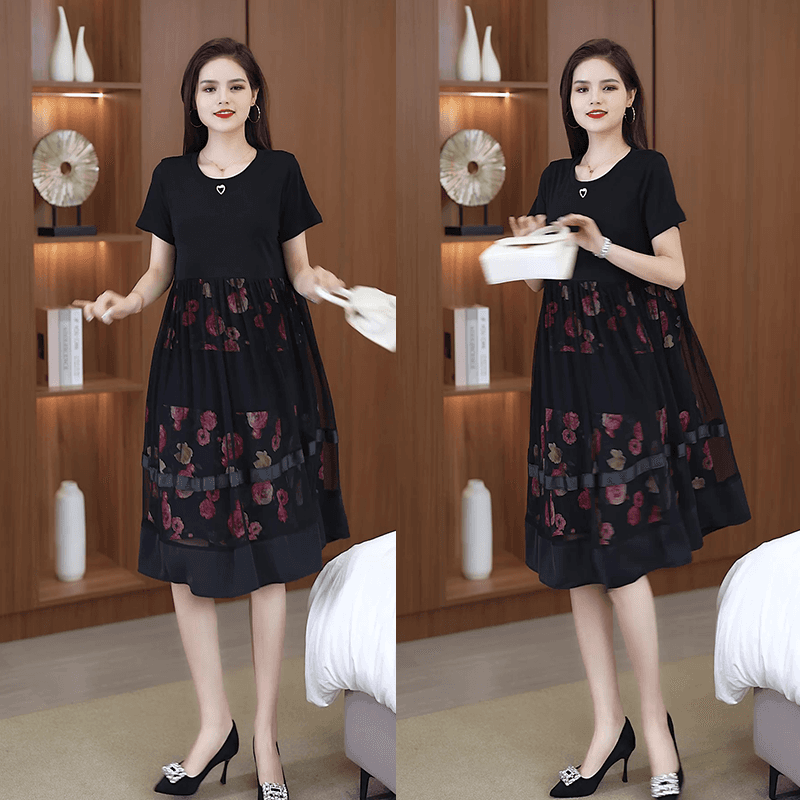 20分鐘前2025夏季新款時尚假兩件寬鬆遮肚網紗連衣裙 - 【限時特惠】僅需NT$980
