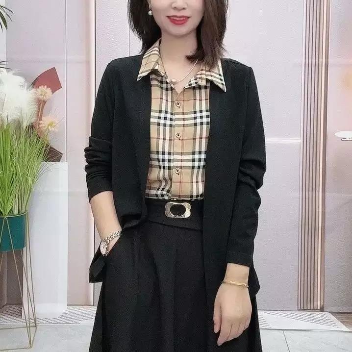 半小時前2022年新款秋裝拼接假兩件套開衫長袖拼接純色翻領氣質流行襯衫 - 下殺價【6入組】NT$1199