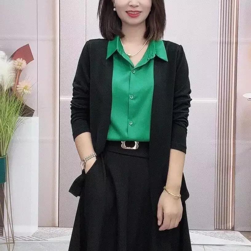 4分鐘前2022年新款秋裝拼接假兩件套開衫長袖拼接純色翻領氣質流行襯衫 - 超值套餐【四入組】NT$1099