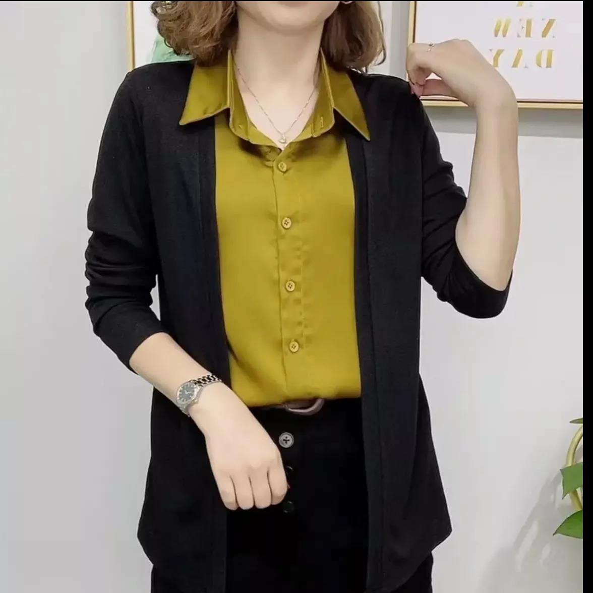 5分鐘前2022年新款秋裝拼接假兩件套開衫長袖拼接純色翻領氣質流行襯衫 - 超值套餐【四入組】NT$1099